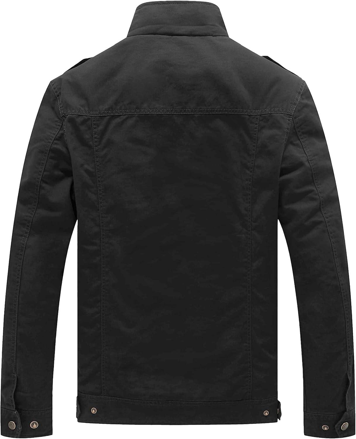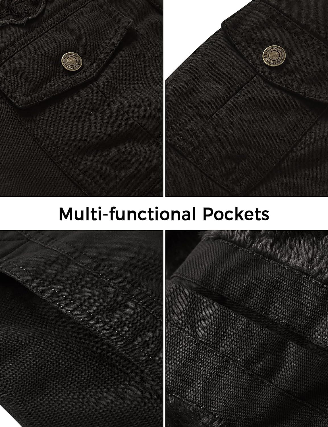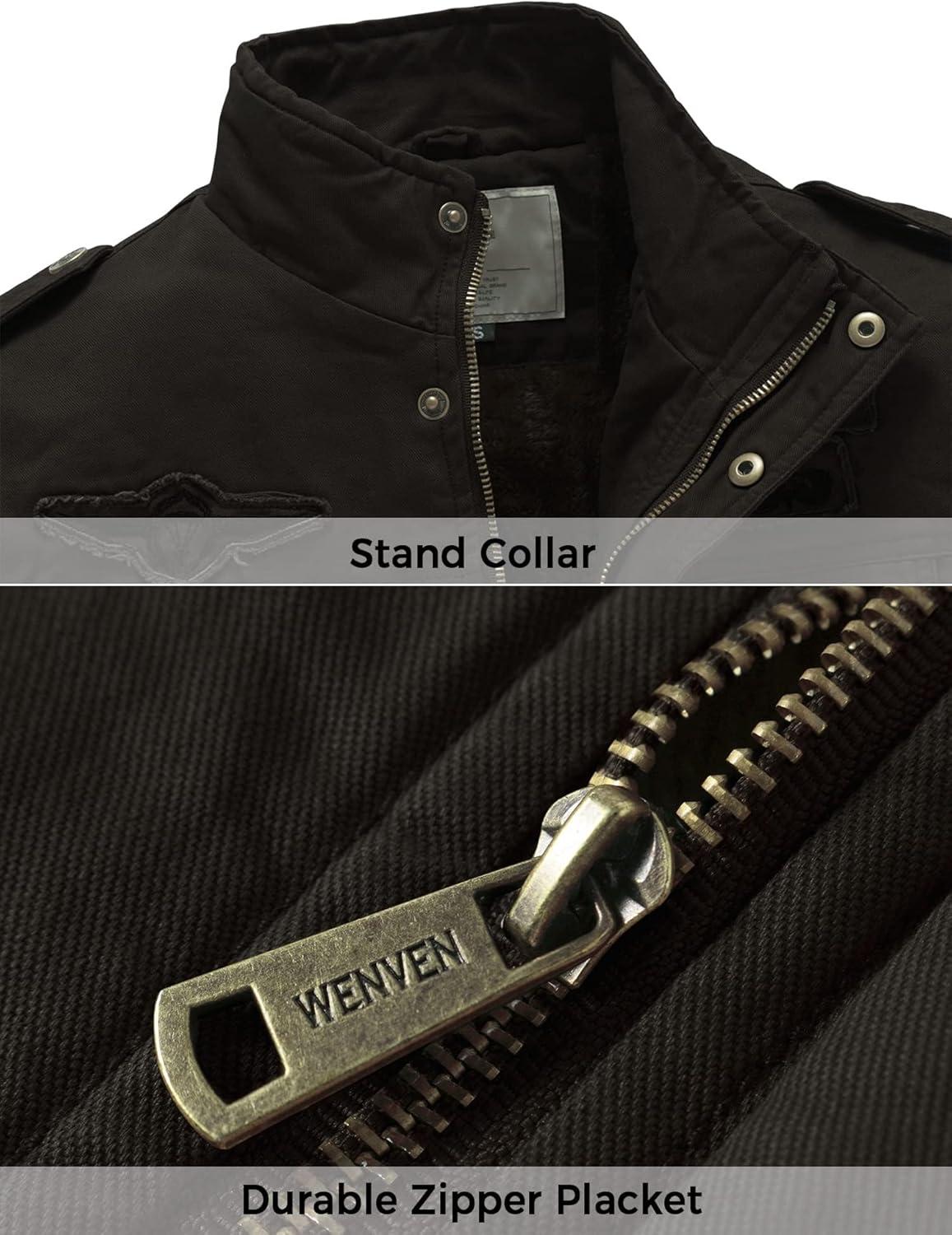 WenVen Men’s Military Jacket Fleece Lined Winter Puffer Coat Cotton Windbreaker Parka(Black)
