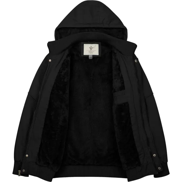WenVen Mens Thick Winter Windproof Jacket Wool Lining Cotton Military Coat With Detachable HoodBlack