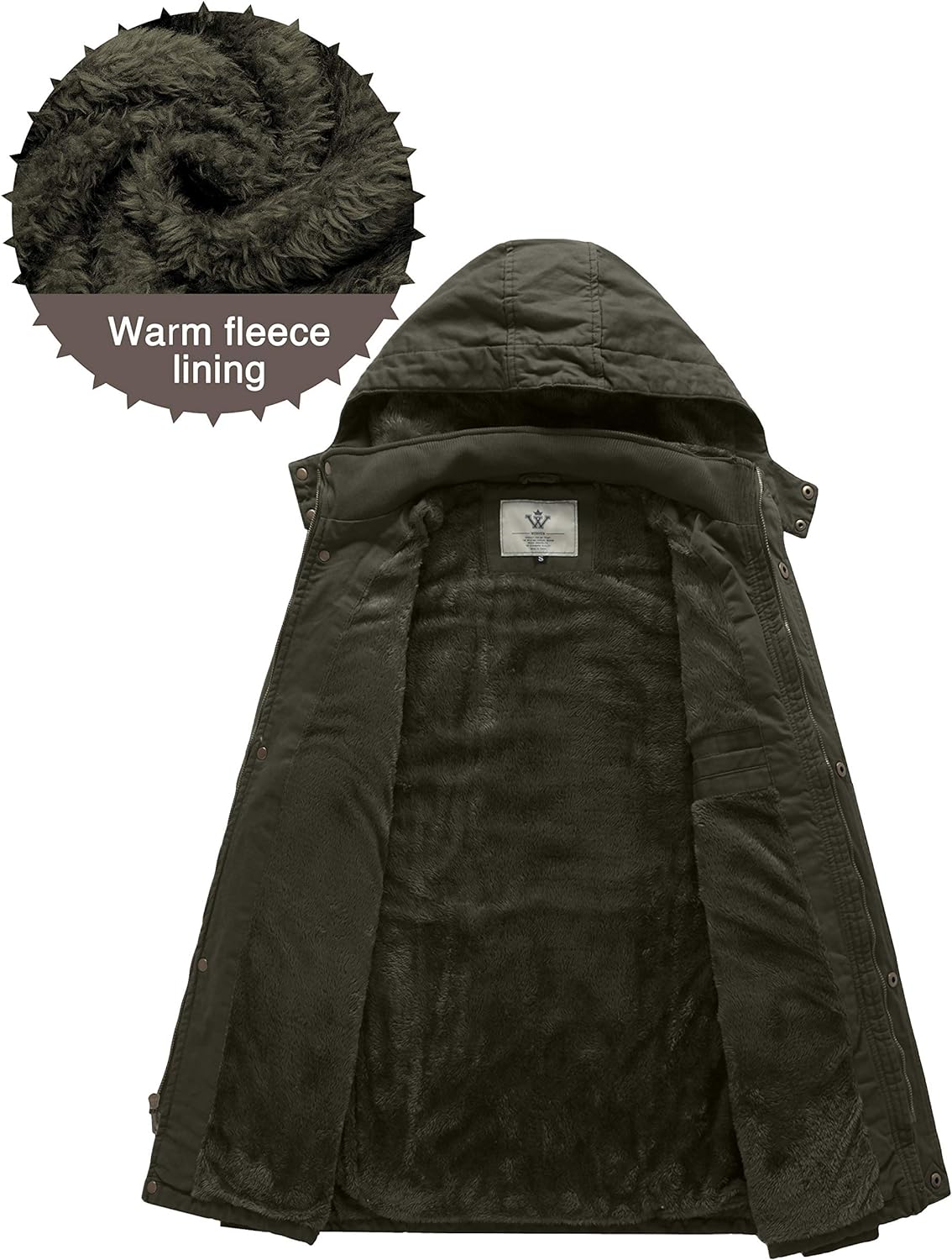 WenVen Men’s Winter Thicken Cotton Parka Jacket Warm Coat with Removable Hood(Army Green 2022)