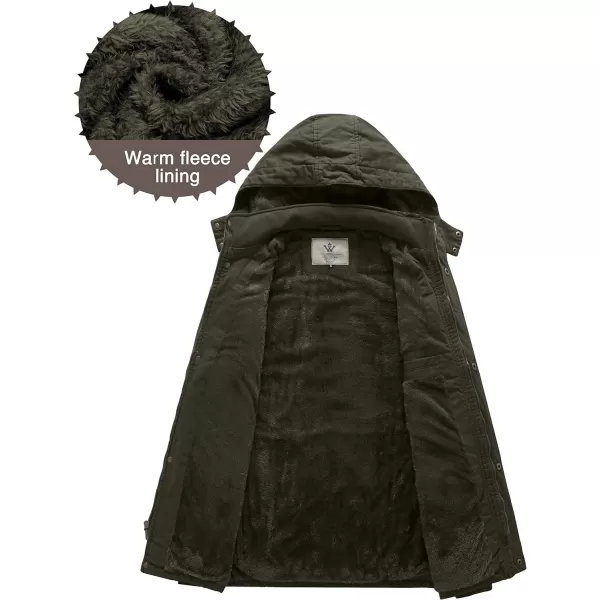WenVen Mens Winter Thicken Cotton Parka Jacket Warm Coat with Removable HoodArmy Green