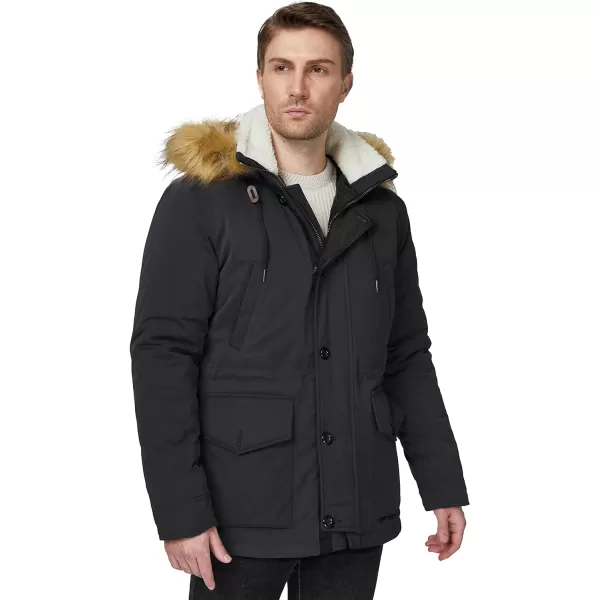 WenVen Mens Winter Warm Thickened Waterproof Parka Jacket Fur Hooded CoatBlack