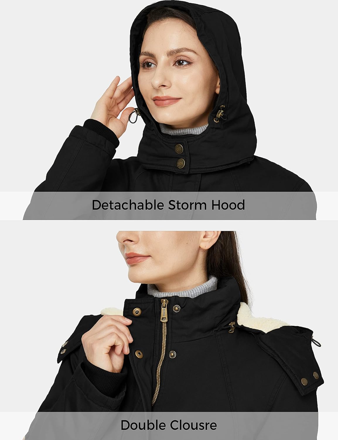 WenVen Womens Winter Warm Sherpa Lined Jacket Heavy Parka Coat with HoodBlack
