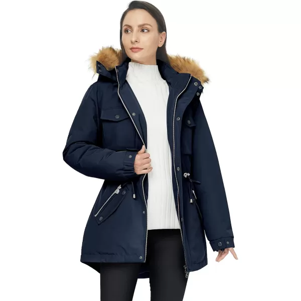 WenVen Womens Winter Waterproof Warm Parka Jacket with Detachable Fur HoodNavy